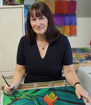 let dry and paint the silk in desired techniques (e.g. using traditional techniques like resist, layering, Shibori…)